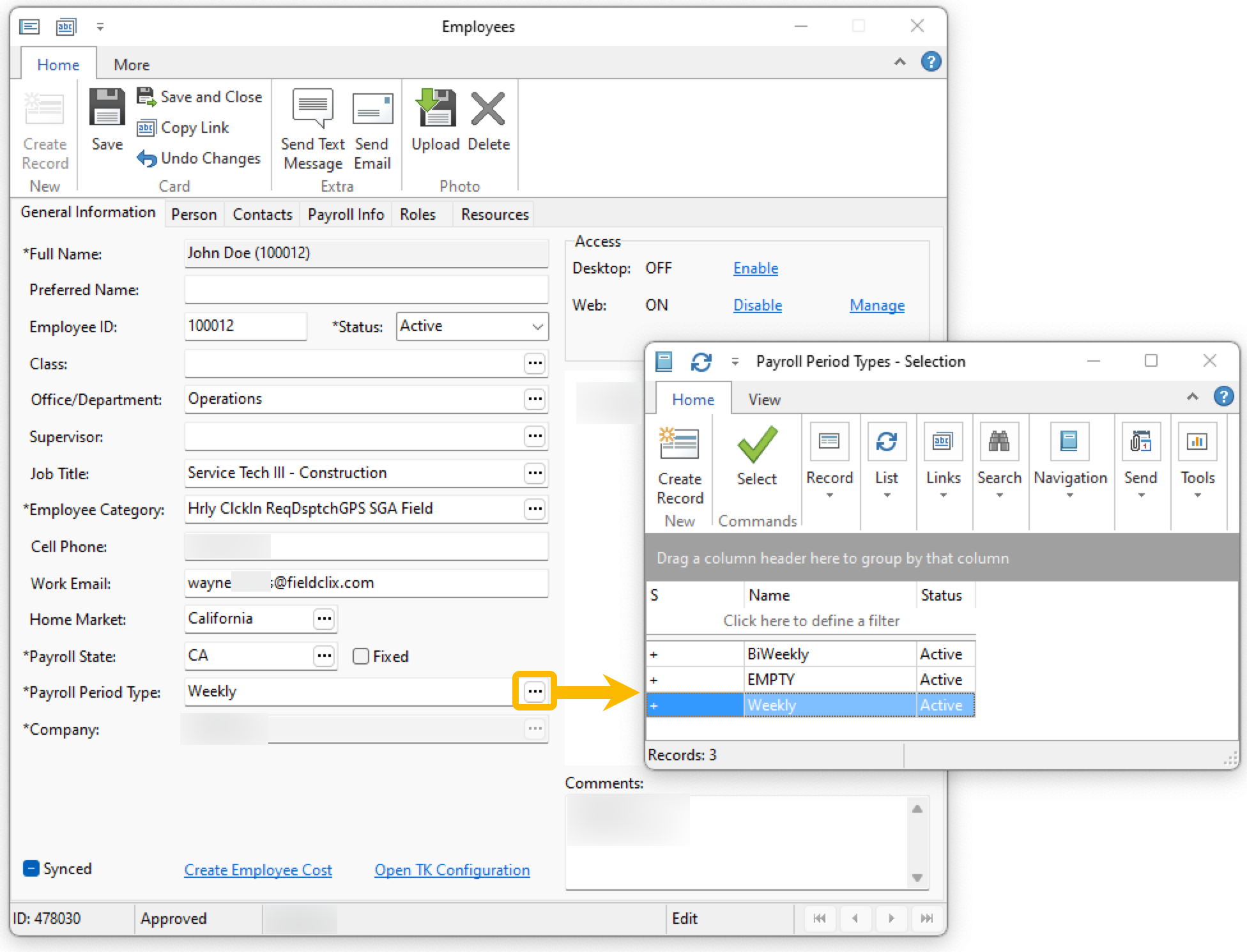 - Click "OK" to return to the Employee card