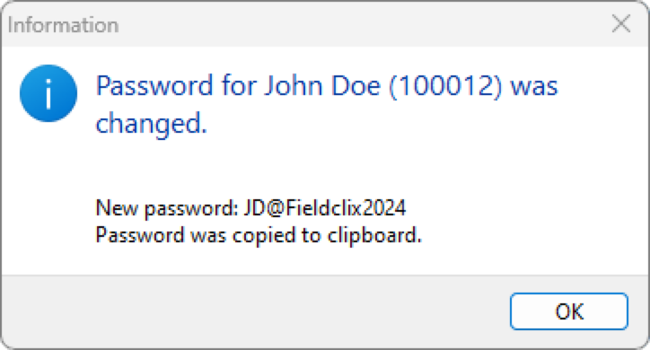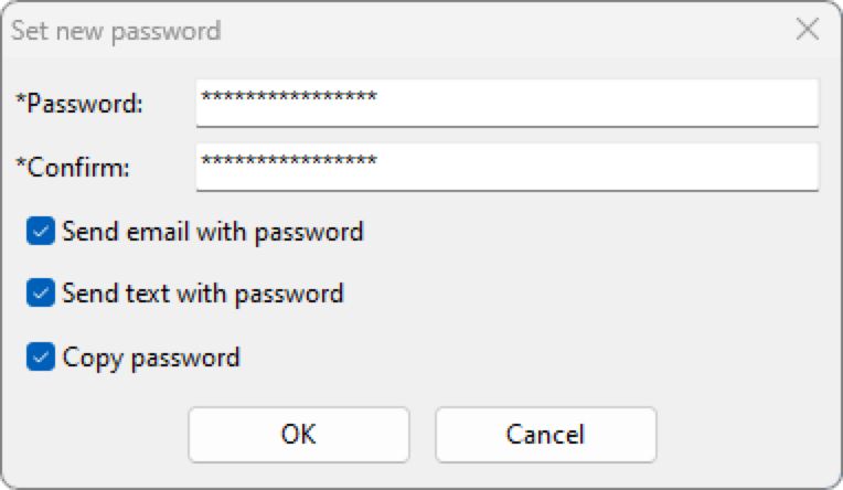 - Hit "OK" to set the password, send the messages and copy the new password to the clipboard
