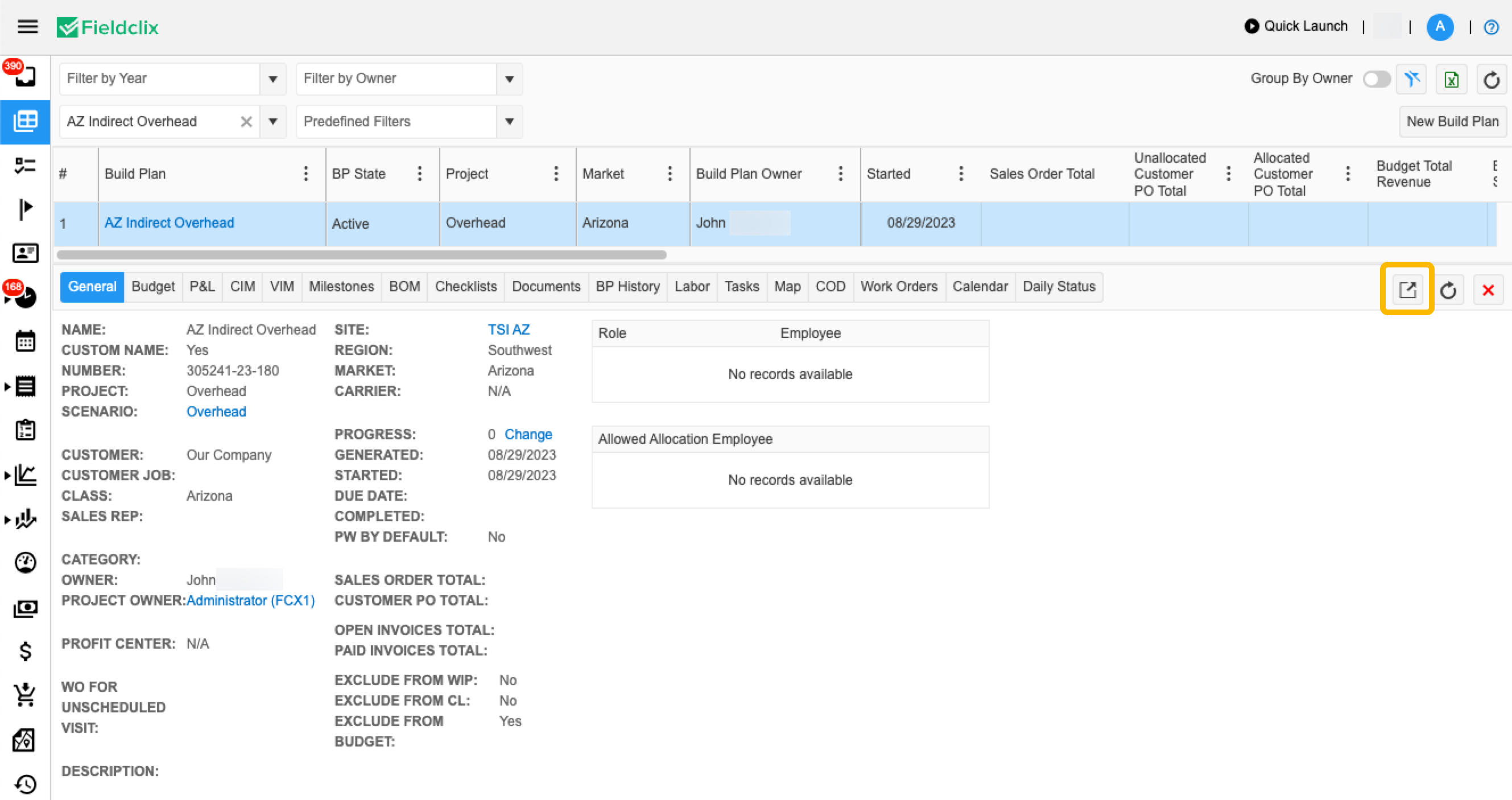 Many employees may be permitted to allocate COD Receipts to Overhead under certain conditions. To allow this, the employee should be added as "Allowed-to-Allocate" to the relevant Build Plan. This is done on the Build Plans card.