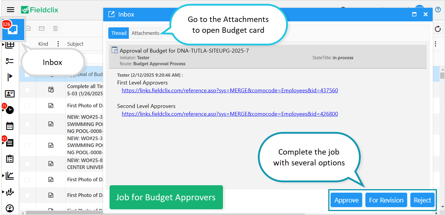 After you send the Budget for approval, it creates a job for a Budget Approver.