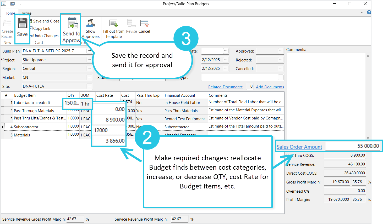 Once you create a Build Plan Budget and save it, it goes to the pending status and available to view in the BP Budget tab.