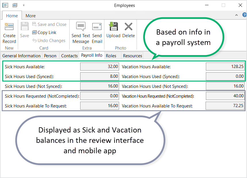 - Updating sick and vacation balances in the payroll system.