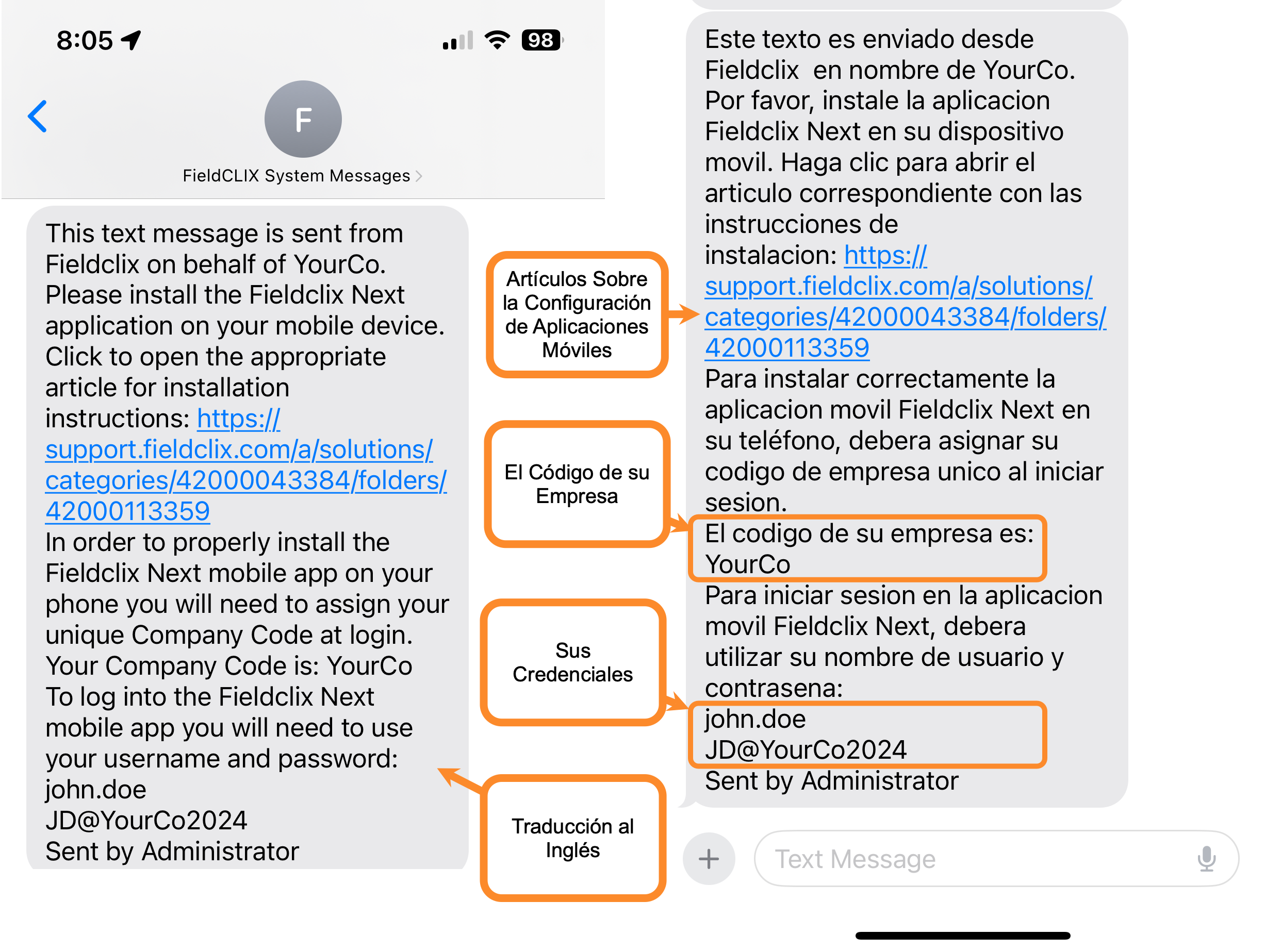 Su empresa se encargará de enviar un mensaje de texto y posiblemente un correo electrónico desde el sistema con información sobre cómo configurar la aplicación junto con lo siguiente: