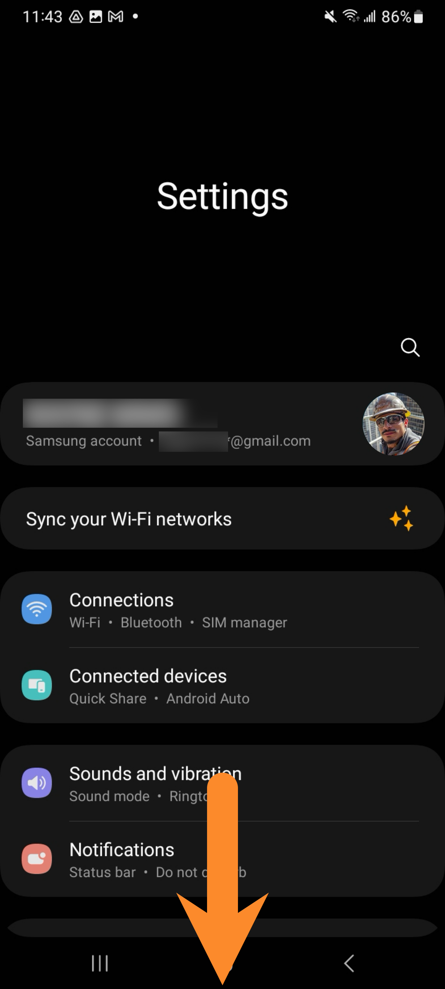 Busque y abra el menú principal de Configuración de su dispositivo: