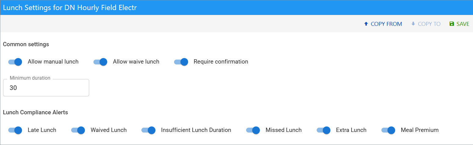 Enable these alerts to flag manual lunches that do not meet category requirements. When triggered, the system creates audit results.
